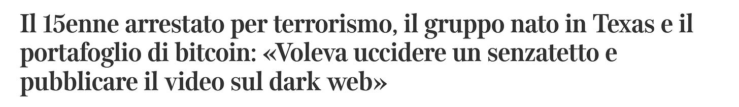 In questa purulenta galassia di nichilismo, germinano altri gruppi spesso embricati con le sigle maggiori: No Lives Matter, HarmNation, Kaskar, Leak Society, Maniac Murder Cult, braccio armato che si è lasciato dietro una copiosa scia di sangue tra apologia del suicidio rituale e dell’omicidio. Tobbz, aderente al Maniac Murder Cult, ha trasmesso in livestream le sue aggressioni con coltello in Romania, una delle quali costata la vita a un’anziana.